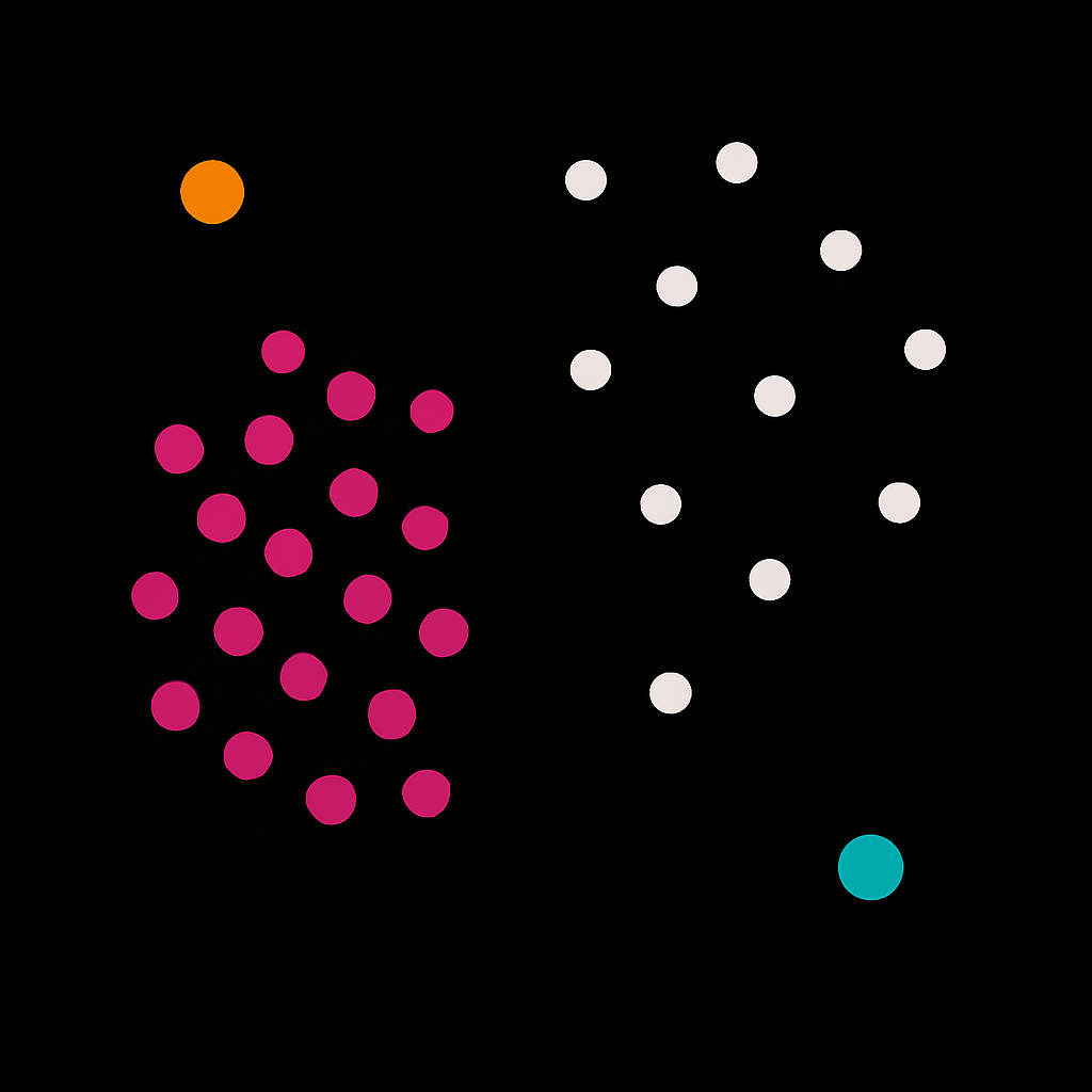 - Za tačke koje su blizu jedna drugoj, vrednost \(𝑝_{ј|i}\) je relativno velika, dok je za tačke koje su međusobno udaljene vrednost praktično zanemarljiva
