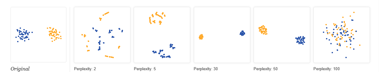 Perplexity se može tumačiti kao mera efektivnog broja suseda, a uobičajene vrednosti su između 5 i 50.